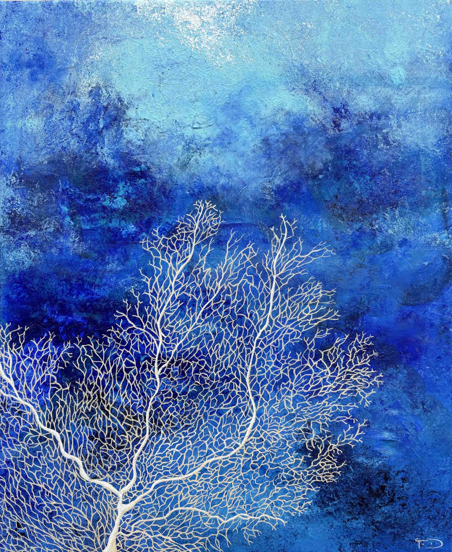 Avec la série Fragile résilîence, Françoise Dagorn explore la vulnérabilité du monde marin et la beauté menacée de ses écosystèmes. Inspirées par les recherches océanographiques, ses peintures traduisent les blessures souvent invisibles de l'océan : la pollution, la surpêche, le dérèglement climatique. À travers la lumière et la couleur, elle invite à se rappeler que l'océan, malgré sa puissance, demeure fragile.